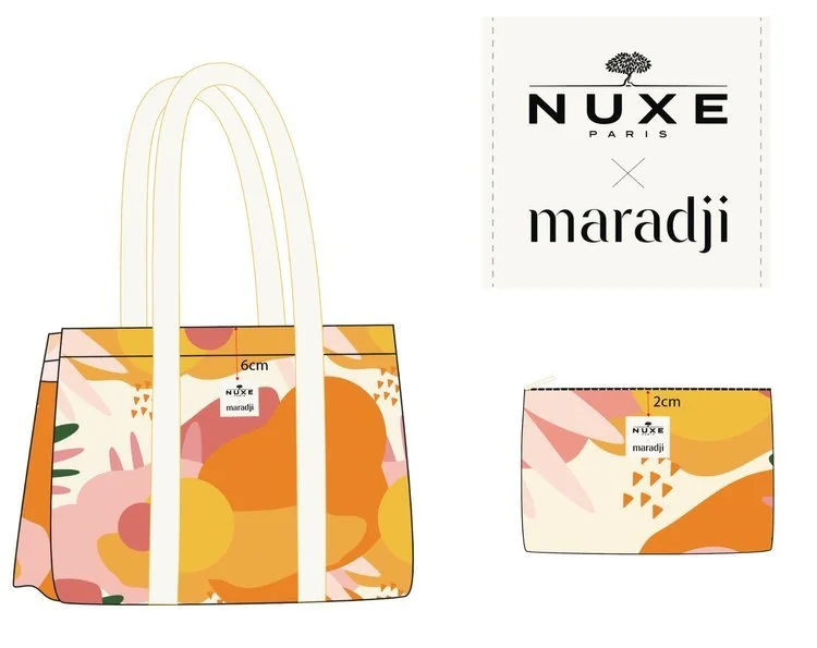 Création du totebag de l’été 2022 pour la collaboration exclusive entre Maradji et la marque de cosmétique Nuxe, pour la promotion de leur gamme solaire.